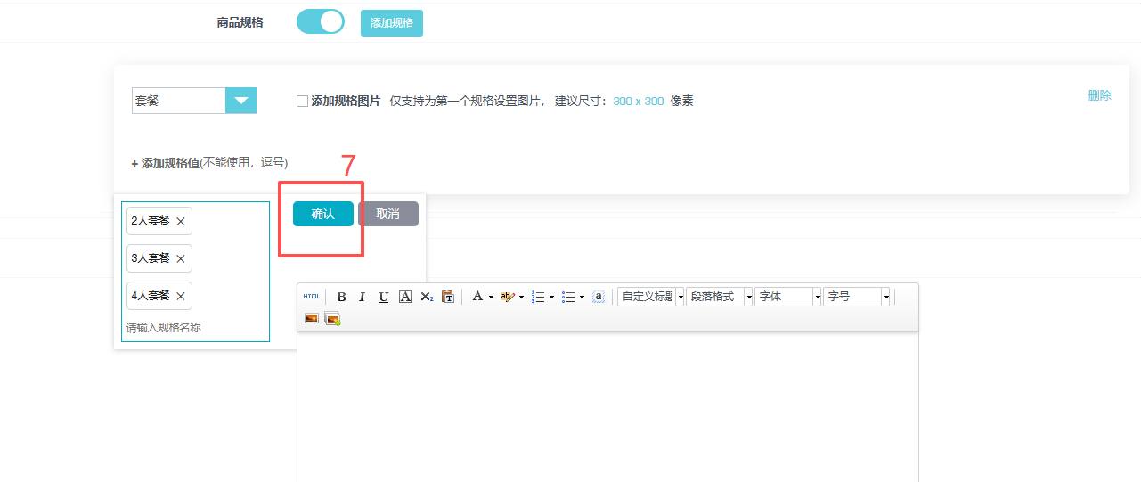 b. 如果以后要修改某个规格 ,可以先删除规格保存商品后,再次进入编辑规格添加,以免规格乱。