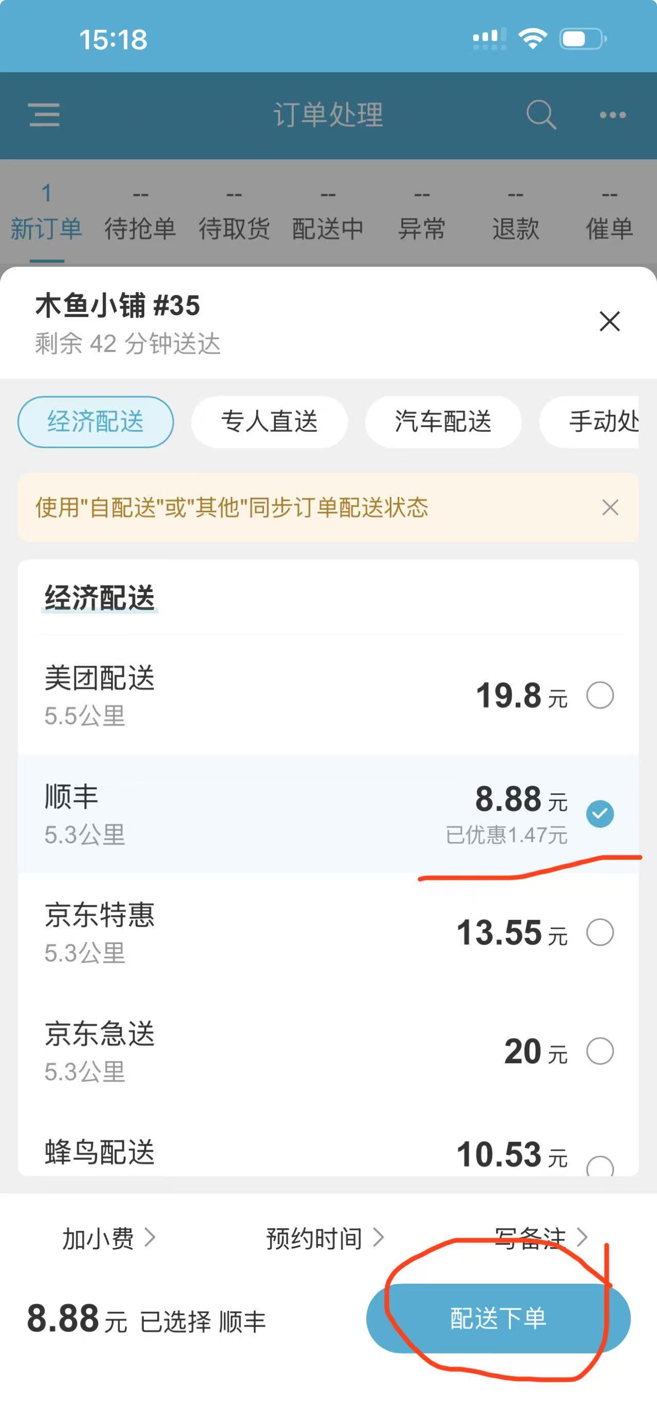 第3步:选择配送平台后,再点配送下单: